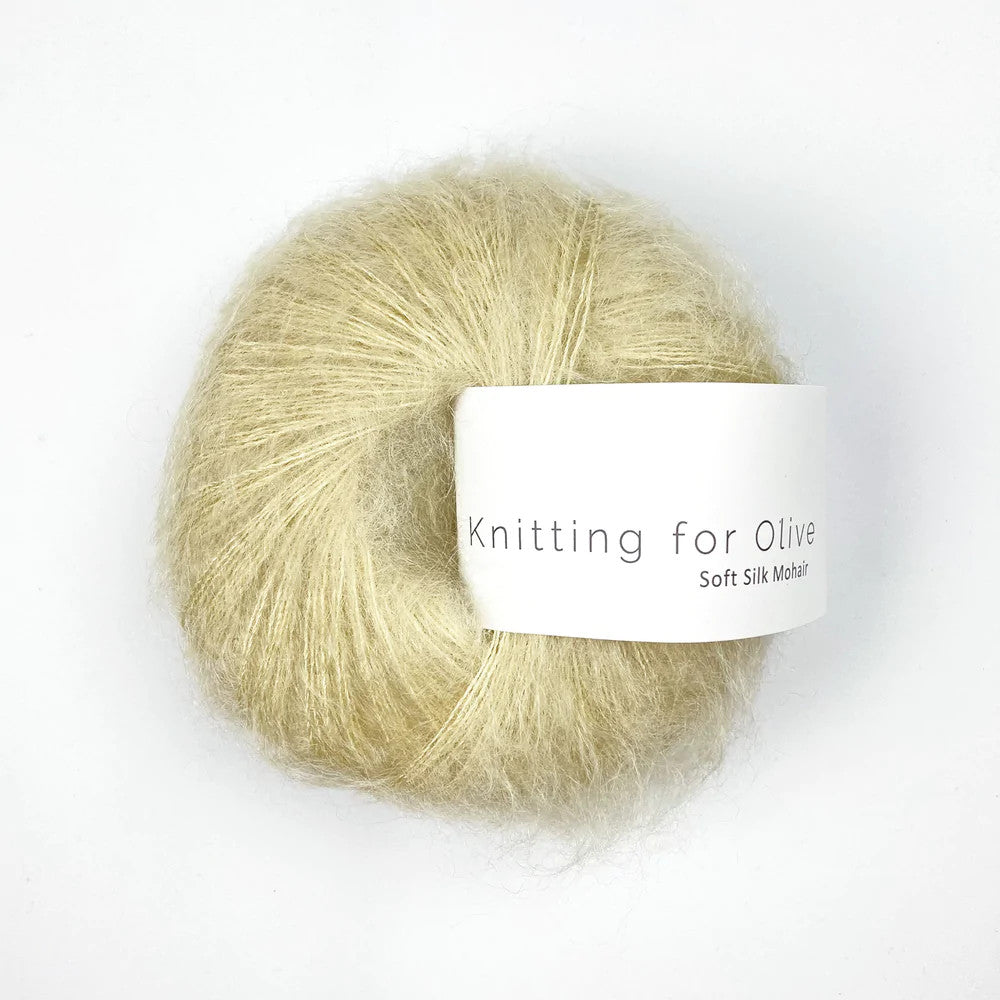 Knitting for Olive Soft Silk Mohair is a wonderful combination of the finest mohair (70%) and silk (30%), which makes it very soft and pleasant on the skin. The yarn is high-quality, but ethically produced (Cruelty Free) - The silk fibers are collected from the cocoons only after the larvae have developed into butterflies, i.e. the larvae are not killed in the production process. The mohair in the yarn comes from Angora goats that are raised in South Africa. All Knitting for Olive yarns are traceable meaning that they know exactly what farms their yarns come from.