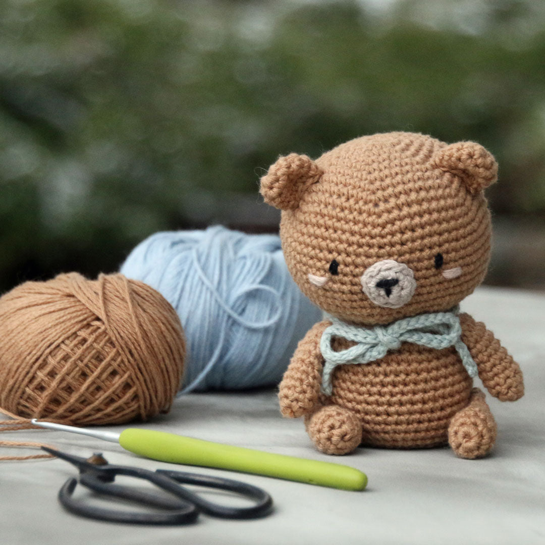 Pakkaus sisältää suomenkielisen ohjeen (A5 printti) sekä langat ja täytevanun. Pakkaukseen ei kuulu virkkuukoukkua.