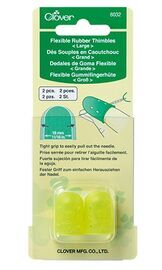 Cloverin kumisormustin on pehmeästä elastomeerista valmistettu joten se muovautuu täydellisesti sormen päähän. Sormustimella saat pitävän otteen neulasta tai puikosta. Sopii myös suojaamaan sormen päitä neuletöissä. Sormustimessa on pieniä tuuletusaukkoja, joiden ansiosta sormi ei hiostu. Pakkaus sisältää kaksi sormustinta. Saatavana kaksi joustavaa kokoa.
