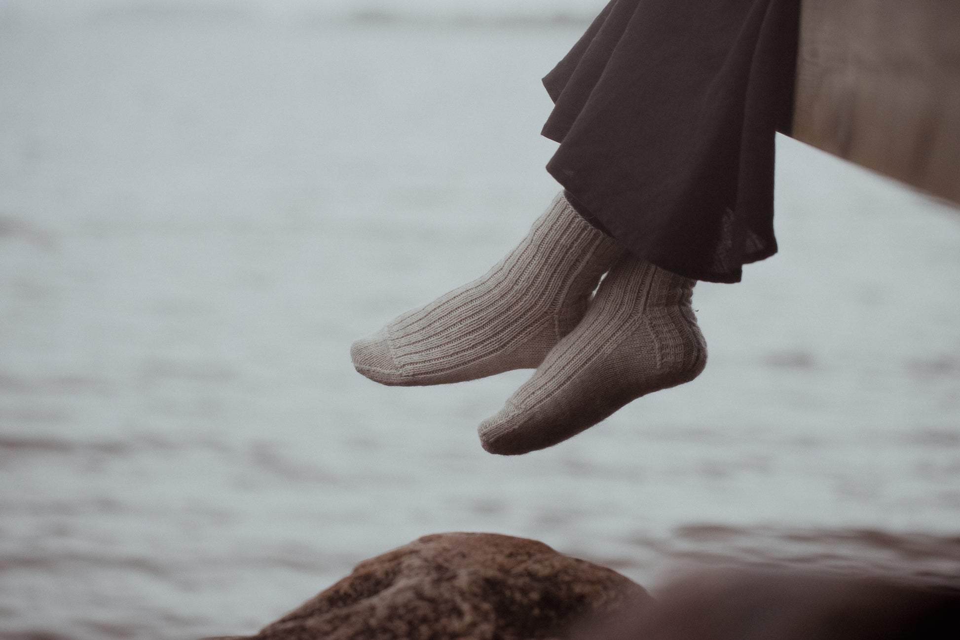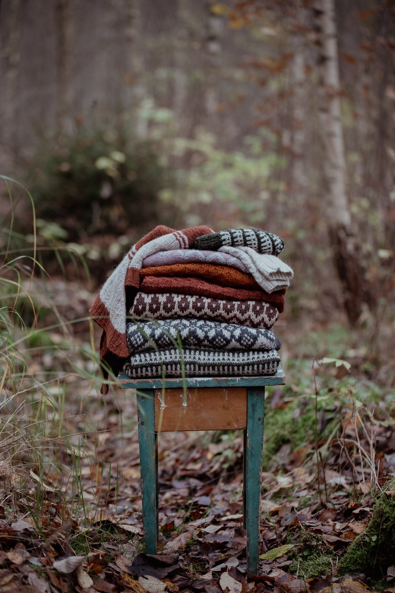 ”Kirjan neuleet ovat syntyneet maan kanssa hiljaa keskustellen, ja niissä luonnon elementit muuttuvat silmukoiksi ja neulepinnoiksi”, Lotta kertoo.