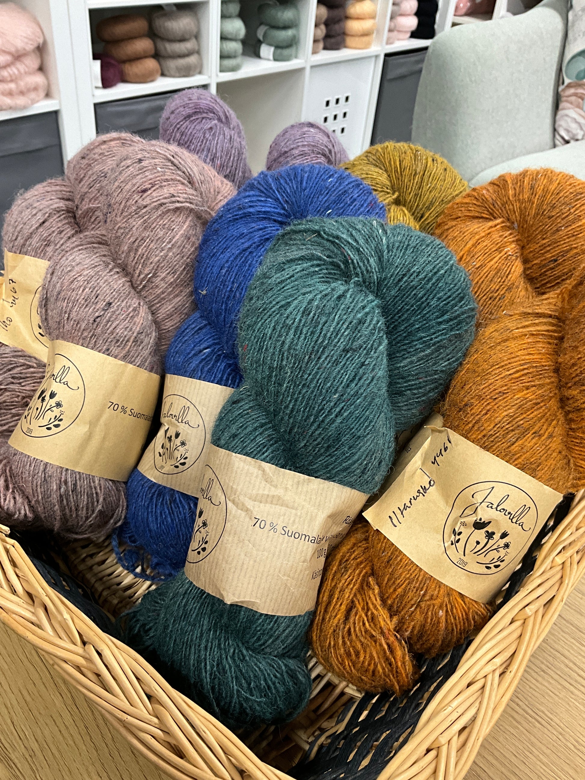 - Koostumus: 100 % suomalainen alkuperäisrotujen villa (light fingering)